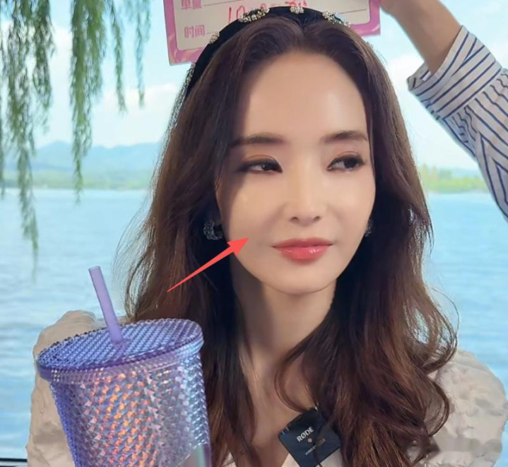 看得出来45岁的韩彩英非常注重面部保养,医美痕迹明显,说话都张不开嘴,脸僵得都不敢做大表情,如果大笑就会出现括号脸的情况,就算是直播间的完美打光,也没能拯救。只要稍微一侧脸,就会暴露法令纹,年龄感非常明显。