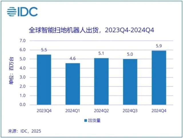 同时,全球智能扫地机器人市场增长也明显乏力。IDC发布报告显示,2024年全年出货2060.3万台,同比增长11.2%;增速明显放缓。